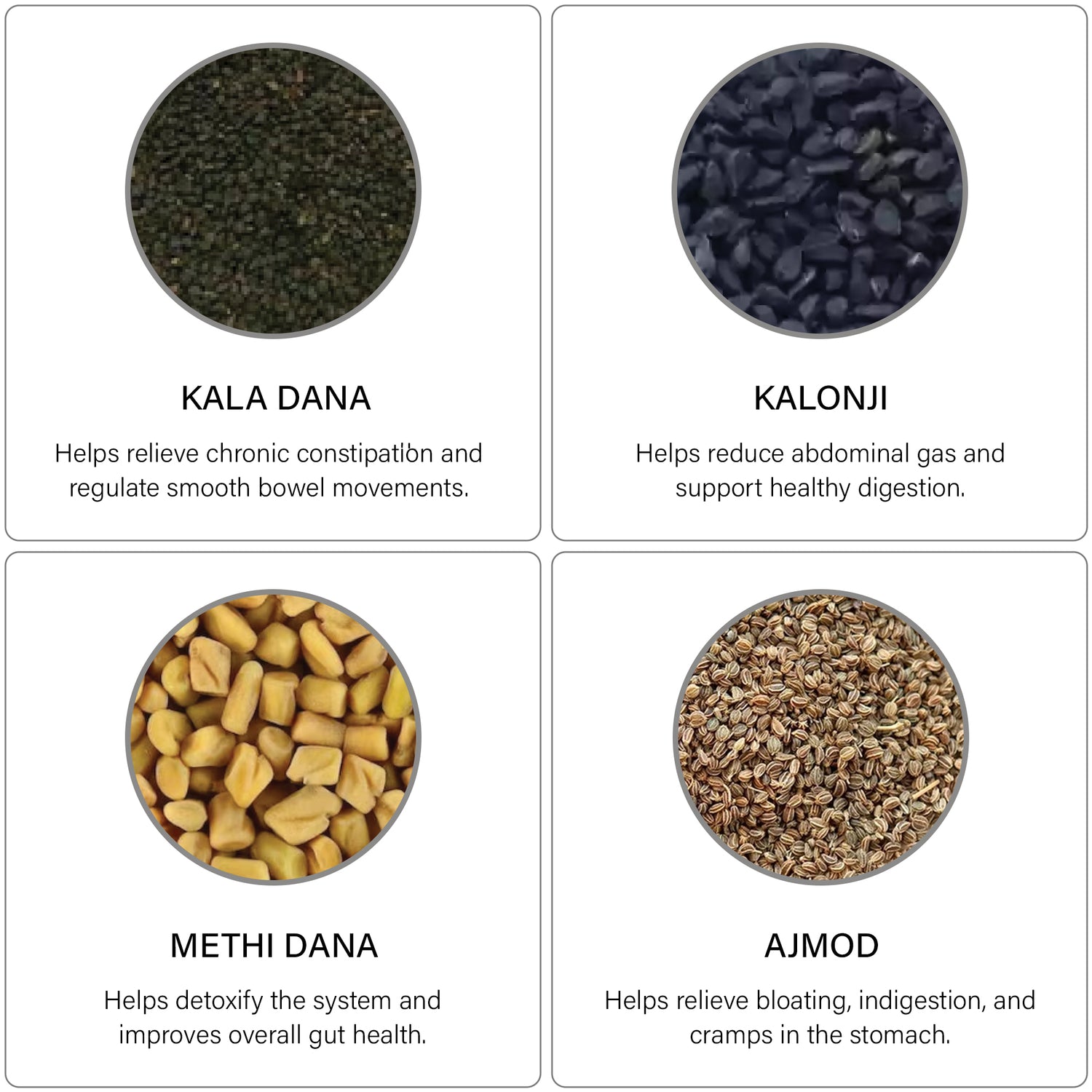 Balances vata dosha, easing issues like dryness, bloating, and irregular digestion. It restores harmony in the body’s natural movements and supports better energy flow.