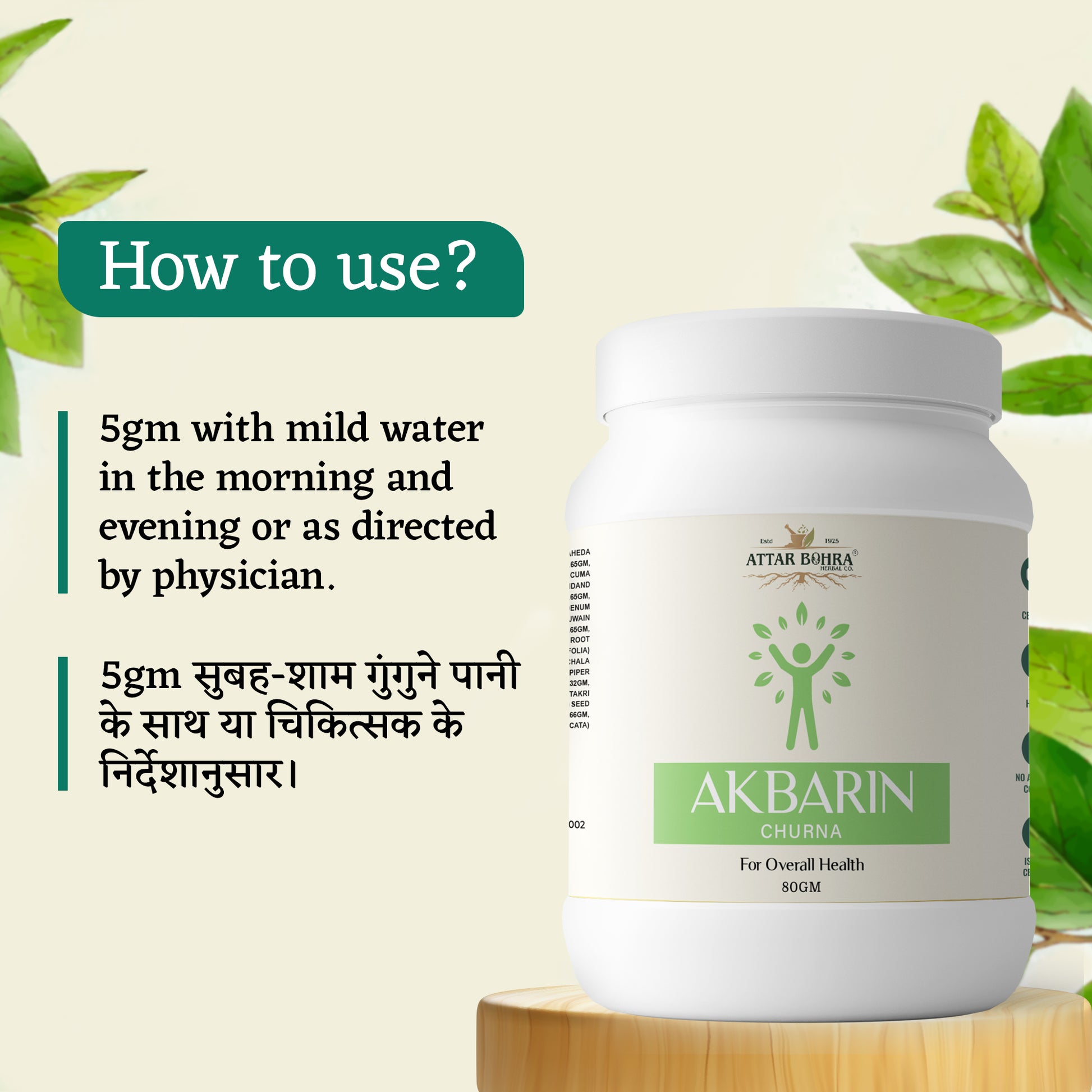 अकबरिन चूर्ण (80 ग्राम) | वजन घटाने के लिए | कब्ज | विषहरण | वात असंतुलन