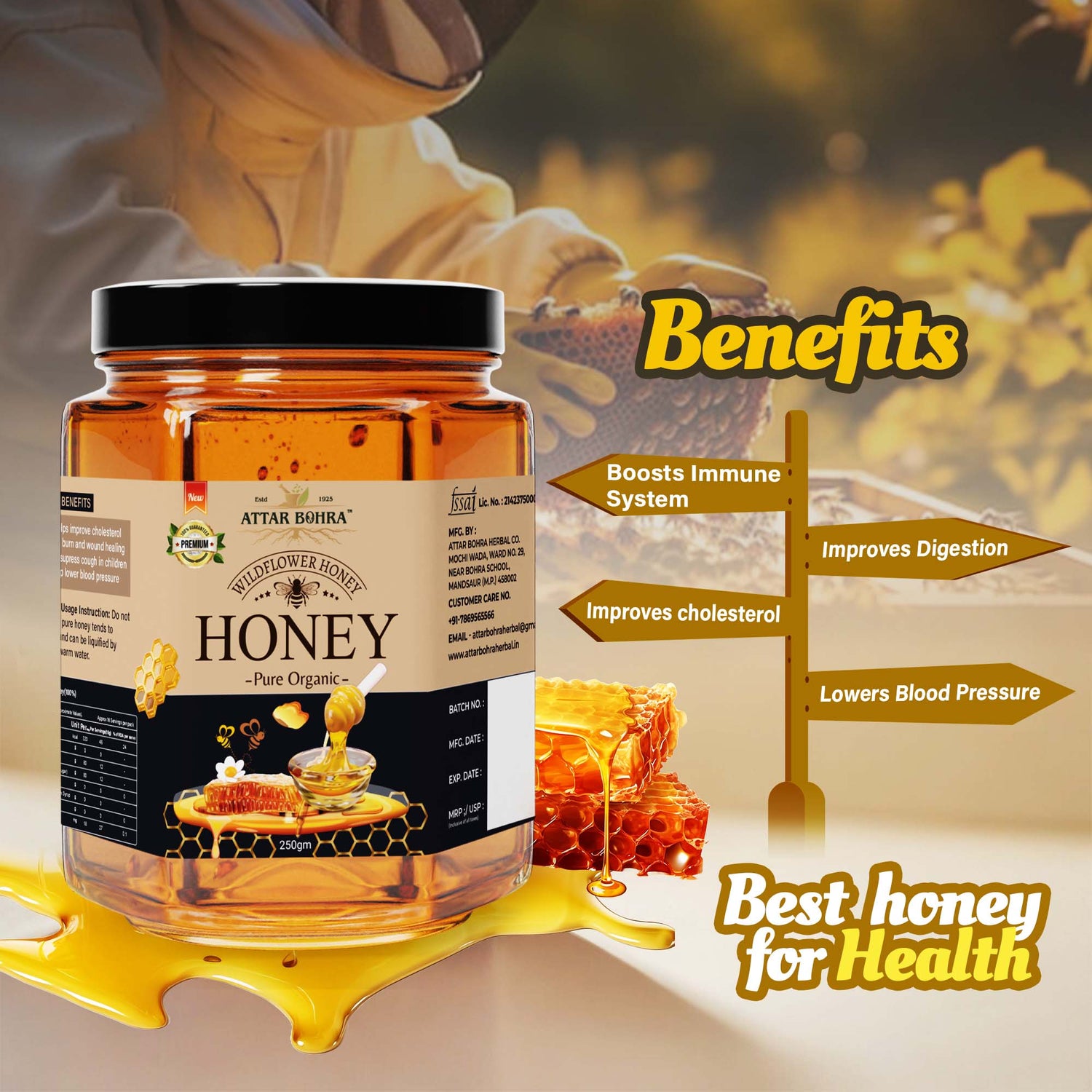अत्तर बोहरा शहद, एक प्रीमियम शहद जो अपनी असाधारण गुणवत्ता और समृद्ध स्वाद के लिए प्रसिद्ध है।