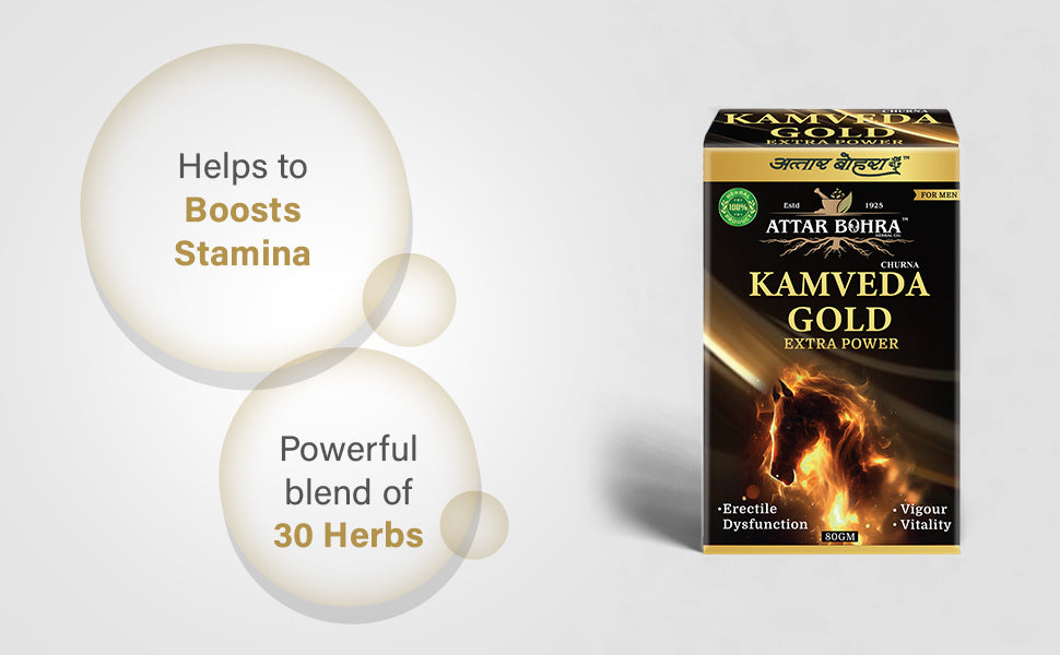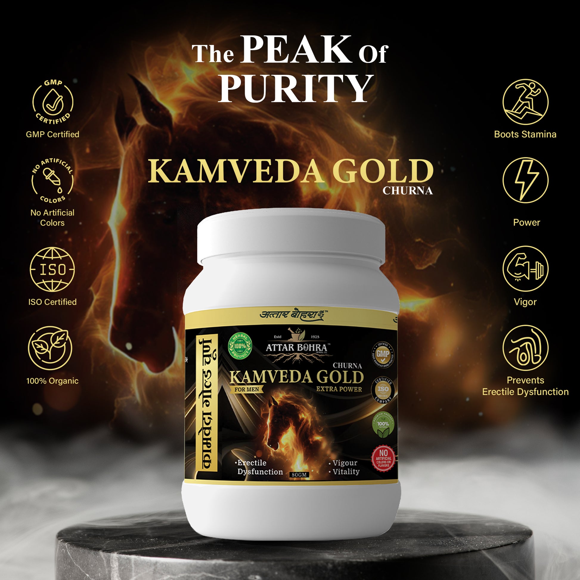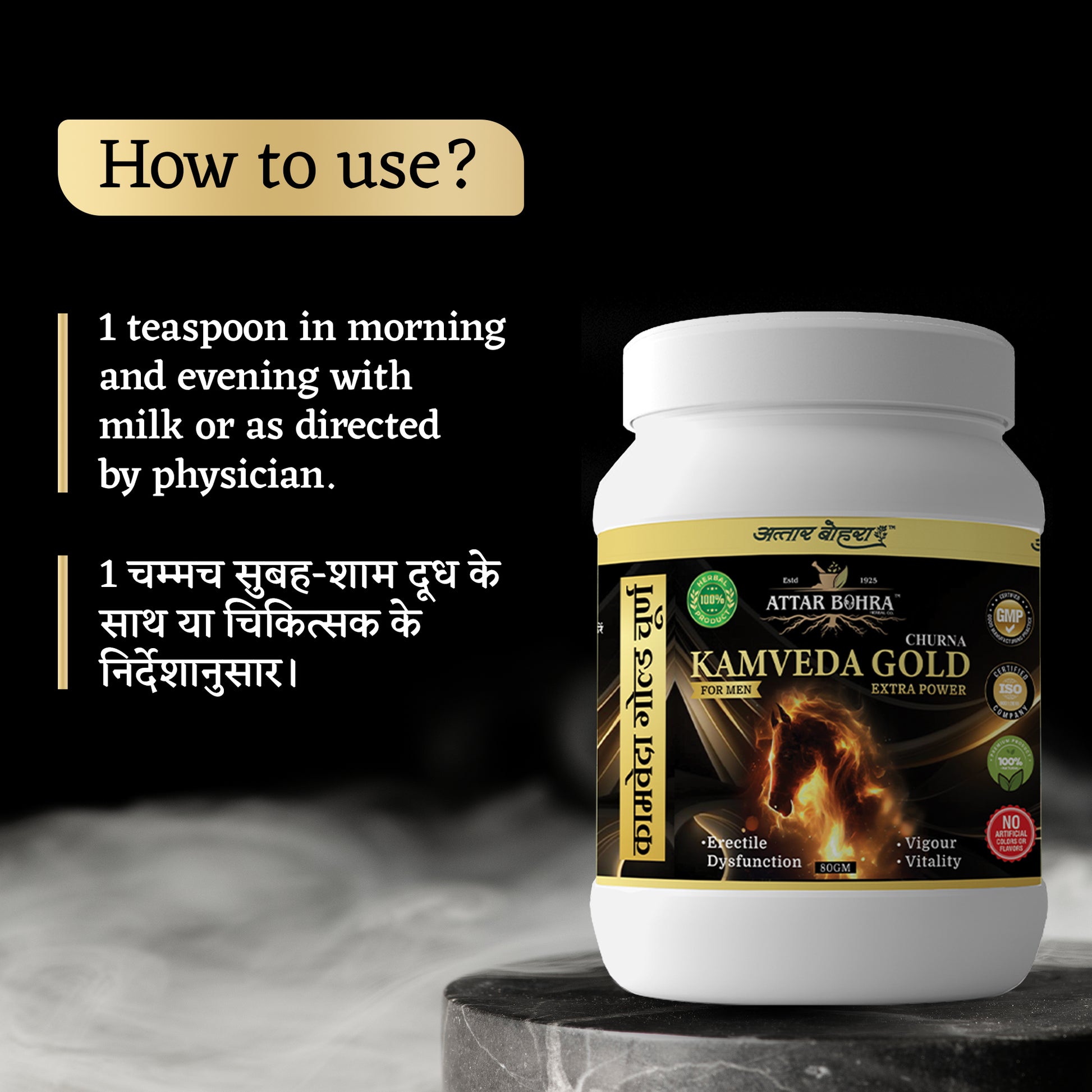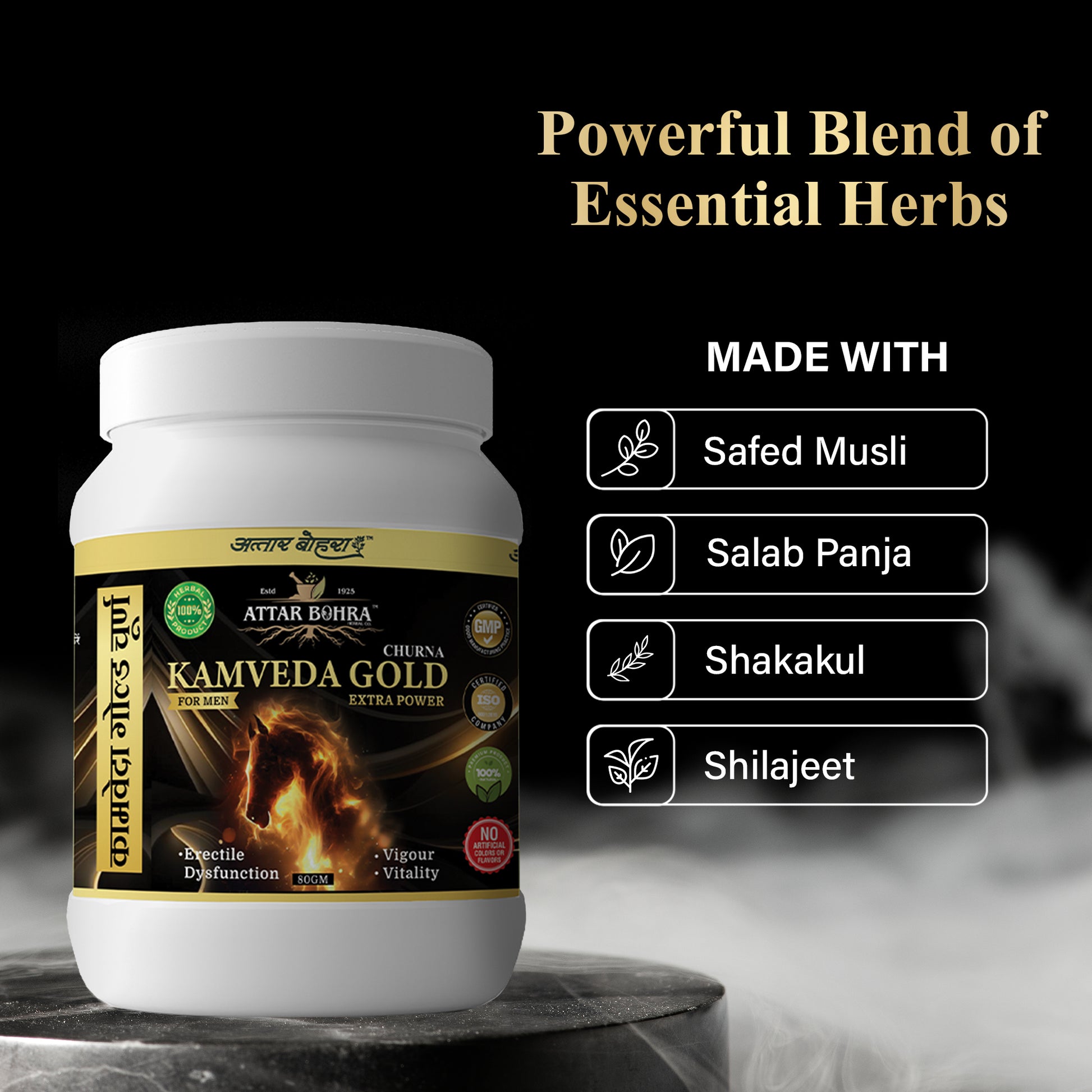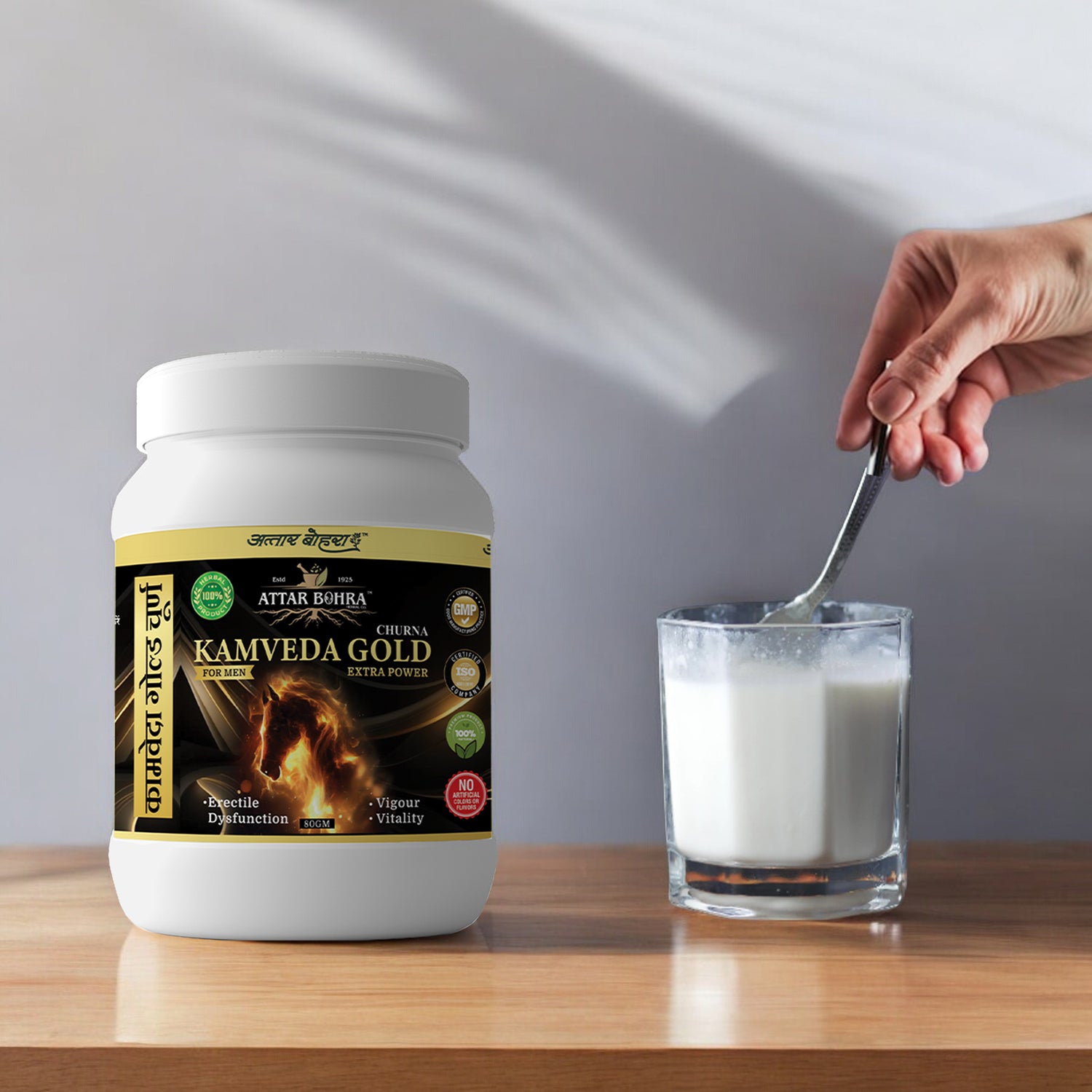 कामवेद स्वर्ण चूर्ण (80 ग्राम) | स्तंभन दोष के लिए | सहनशक्ति | ताकत