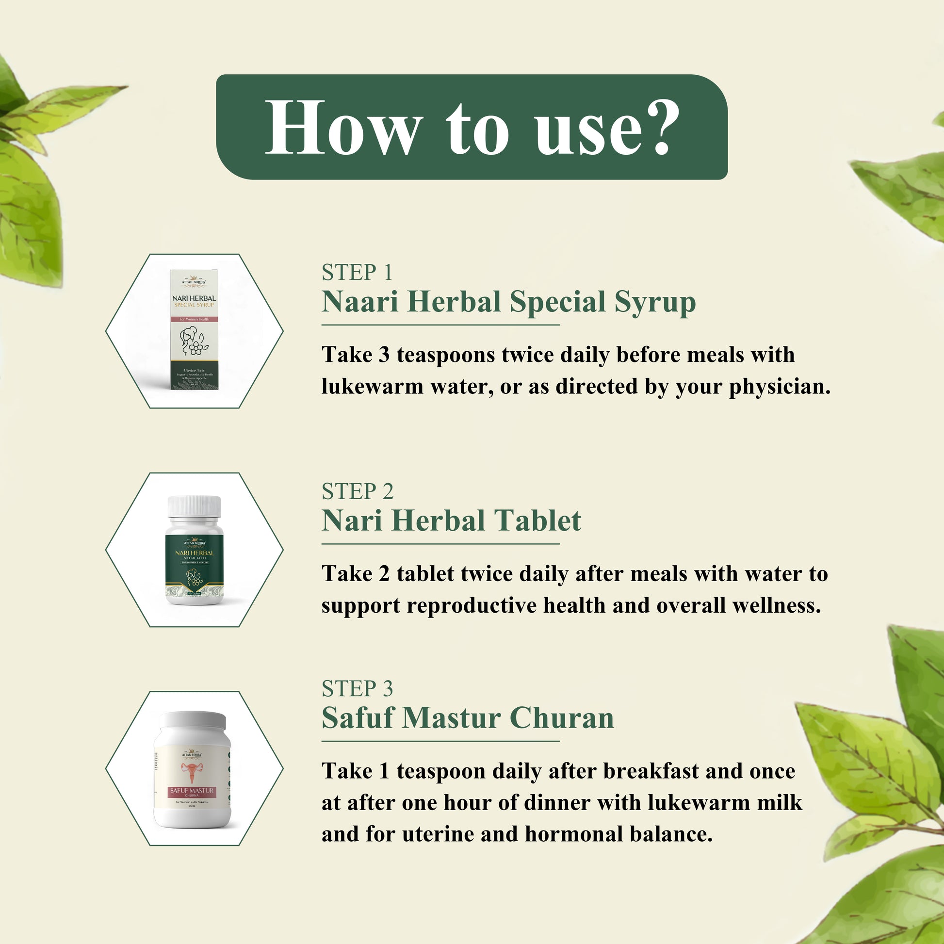 Each product is enriched with carefully selected natural ingredients, chosen for their purity and effectiveness. These ingredients work together to support overall well-being, enhance the product’s effectiveness, and provide holistic benefits. By blending traditional wisdom with modern care, the formulation ensures a natural and reliable solution for everyday health needs.