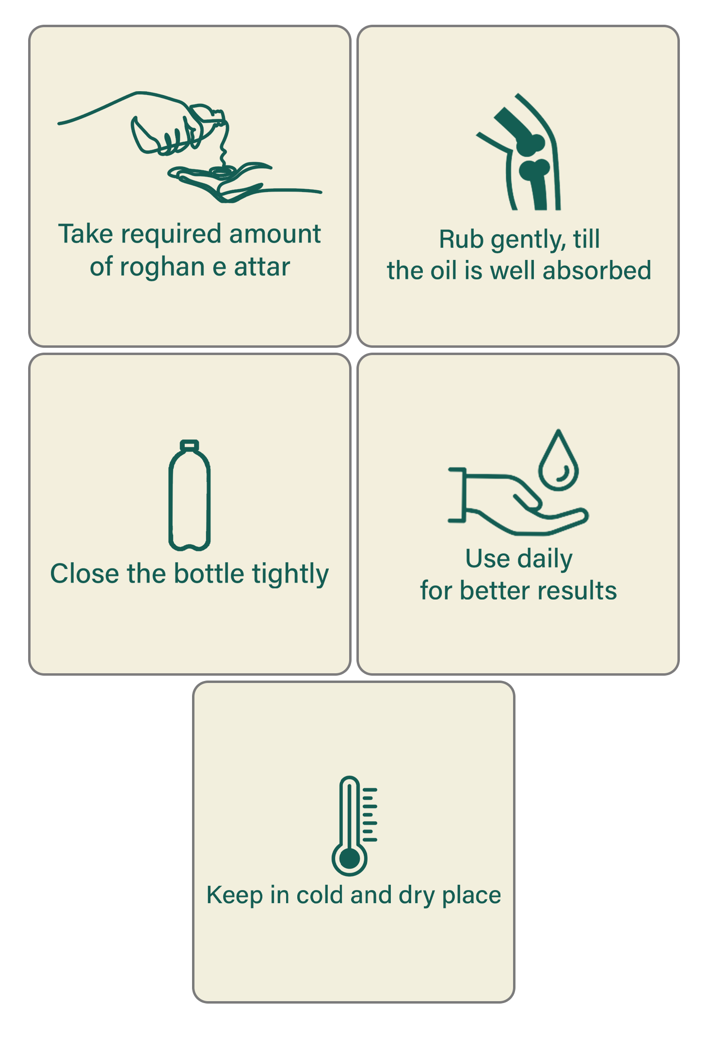 Experience effective relief from discomfort with ROGHAN-E-ATTAR Pain Oil, an advanced herbal formulation designed to address sciatica, stiffness, and swollen bones. Leveraging the time-honored wisdom of Ayurveda, ROGHAN-E-ATTAR offers a natural and potent solution for managing pain and enhancing mobility.