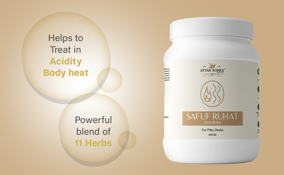 Achieve digestive balance and relief with SAFUF RUHAT Churan, a powerful herbal blend crafted to address constipation, body heat, burning in piles, and acidity. Rooted in the ancient science of Ayurveda, SAFUF RUHAT provides a holistic approach to maintaining digestive health and overall well-being.