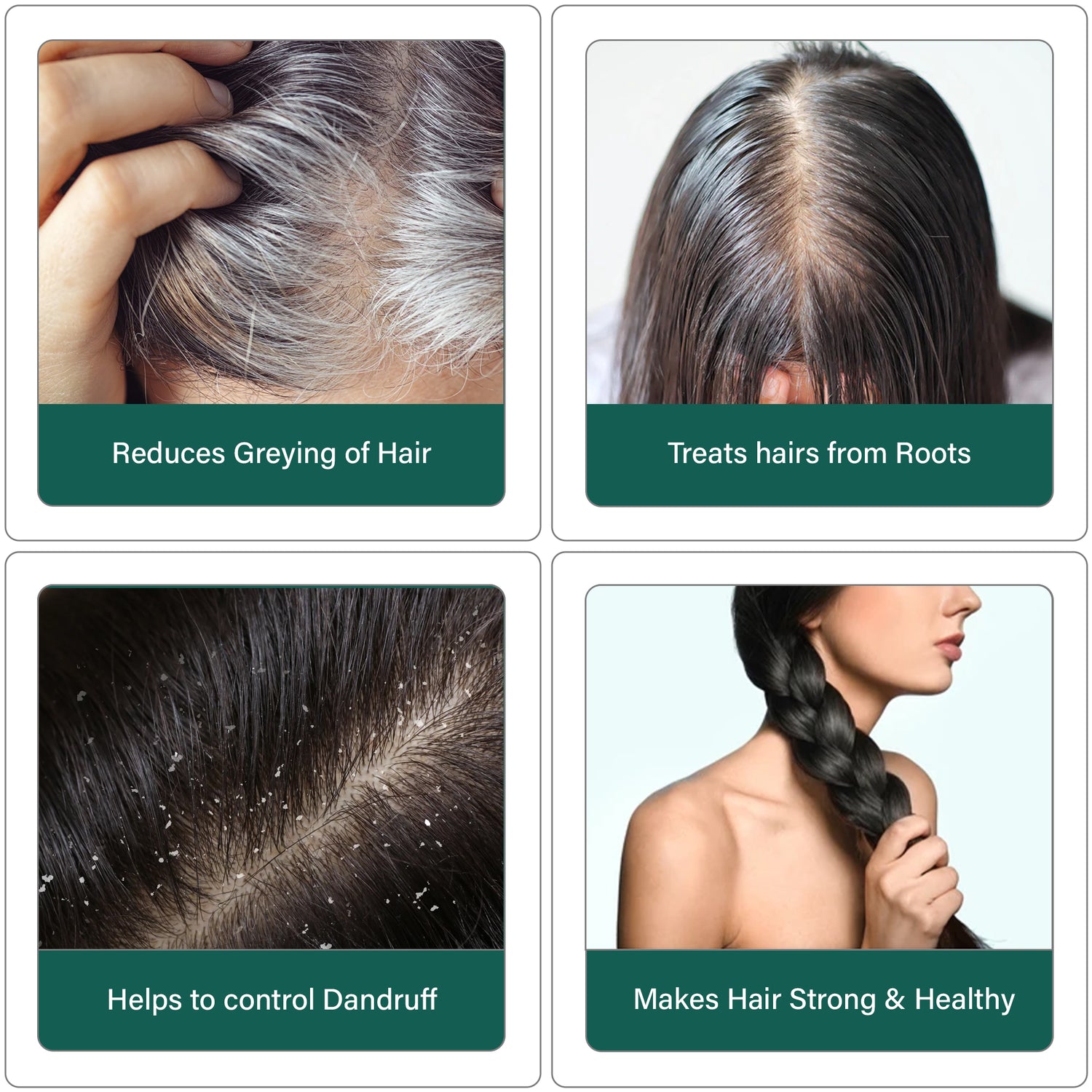 Revitalize your hair care routine with SARRU Hair Oil, an expertly crafted blend designed to address grey hairs, boost hair growth, and strengthen hair from the roots. Infused with the essence of traditional Ayurvedic herbs and modern scientific understanding, SARRU offers a holistic solution for achieving robust and vibrant hair.